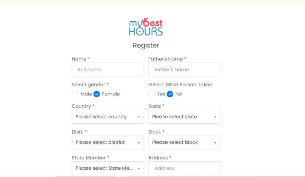 Registration Process for My Best Hours Report